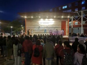 El pasado 25 de marzo comenzamos con esta dinámica concentrándonos en la Plaza de la Solidaridad, en el Barrio de la Victoria. La convocatoria estuvo respaldada por la Asociación Vecinal Los Comuneros, la Asociación Cultural de Amas de Casa de la Victoria y el grupo Scoutt Gilwell, y reunió a más de un centenar de personas en una tarde gélida alrededor del recuerdo de las víctimas mortales de la violencia machista, 25 en lo que va de año (22 mujeres y 3 menores), y de la denuncia de los problemas estructurales que la posibilitan.